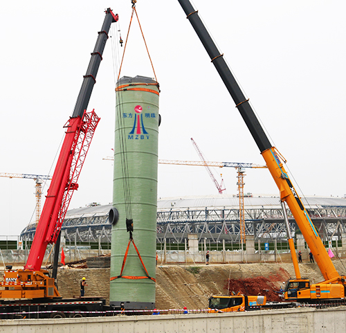 玻璃鋼一體化預制泵站的容積通過計算有效容積,底部泵坑的流體動力學水力模型,新型筒體材質的應用,內部管配件包括粉碎性格柵的集成化安裝等來實現??梢詫㈩A制泵站的體積控制在傳統(tǒng)混凝土泵站的1/3甚至更小。由此大大縮小了預制泵站的尺寸,節(jié)約了土建成本,方便運輸和安裝。