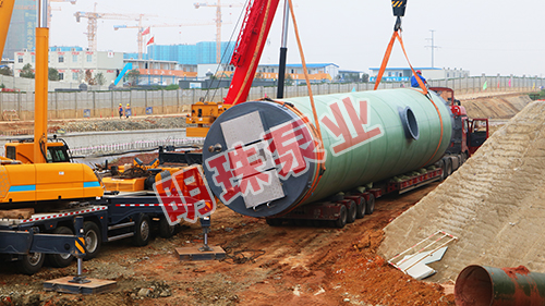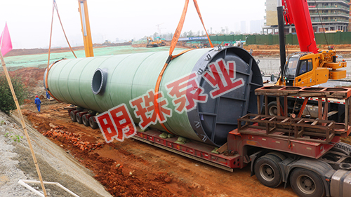 我司3.8米*19.8米大型玻璃鋼一體化預制泵站安裝